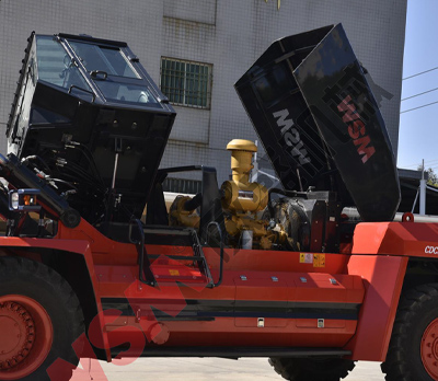 傾翻系統(tǒng)使得內(nèi)部維護(hù)方便便捷,電動(dòng)輔助液壓驅(qū)動(dòng)方式使駕駛室向右側(cè)傾翻大約60°,易于維修保養(yǎng)。